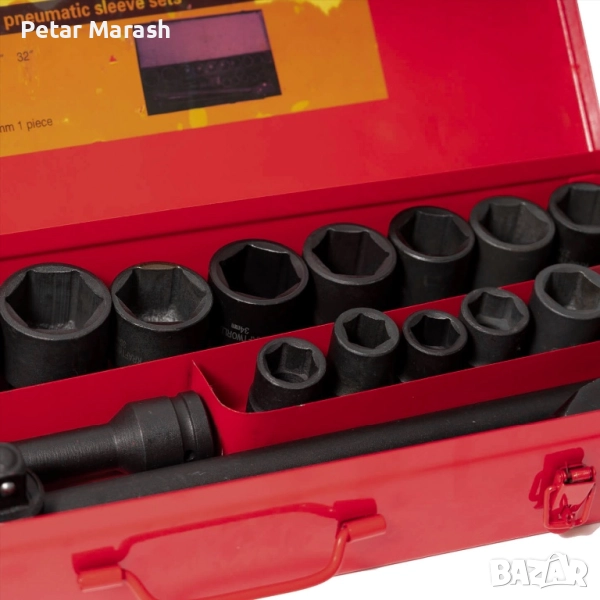 16 броя шестостенни ударни вложки: 19, 21, 22, 23, 24, 26, 27, 28, 30, 32, 34, 36, 38, 41, 46, 50 мм