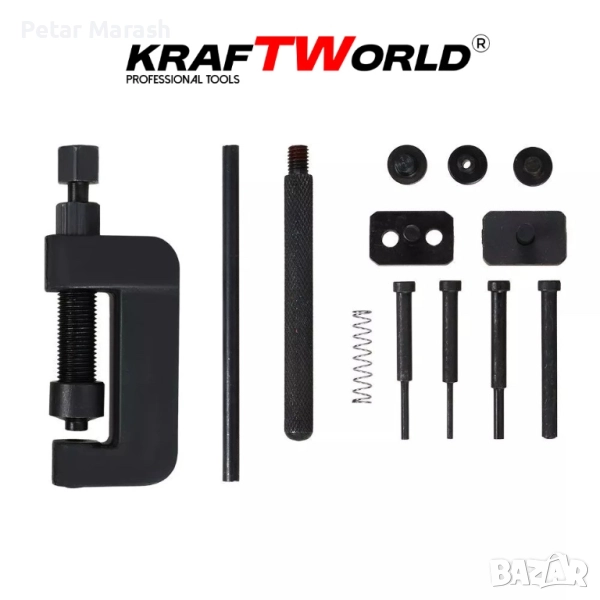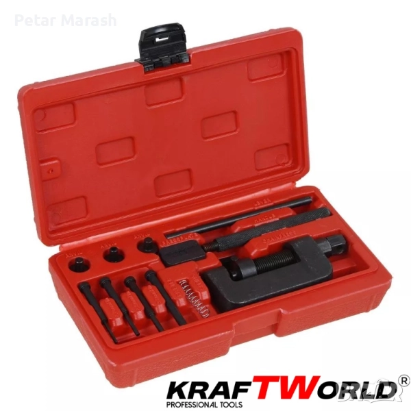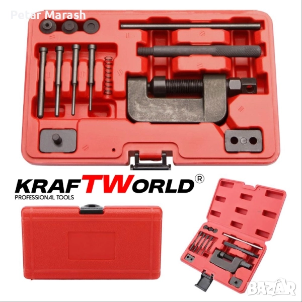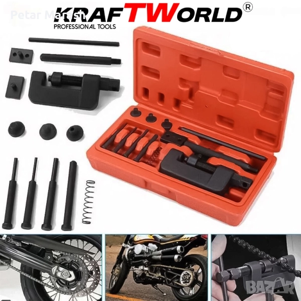 🔧 Комплект за разглобяване и занитване на вериги KraftWorld – универсално решение за мотоциклети и автомобили