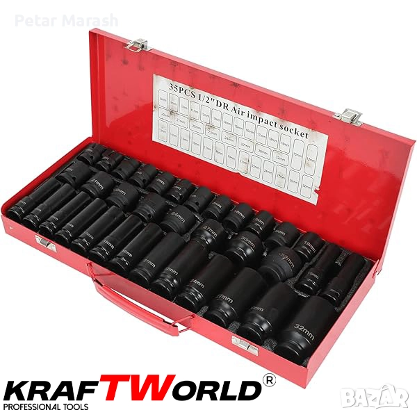 🔧 Комплект ударни вложки KraftWorld 35 части – професионален избор за сервизи и работилници