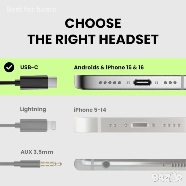 [СЪВМЕСТИМИТЕ УСТРОЙСТВА] Работи с устройства, оборудвани с USB-C порт, включително iPhone 15 и 16, повечето смартфони с Android (Samsung, Google и други) и таблети. Не е съвместим с Lightning или 3,5 мм AUX портове.