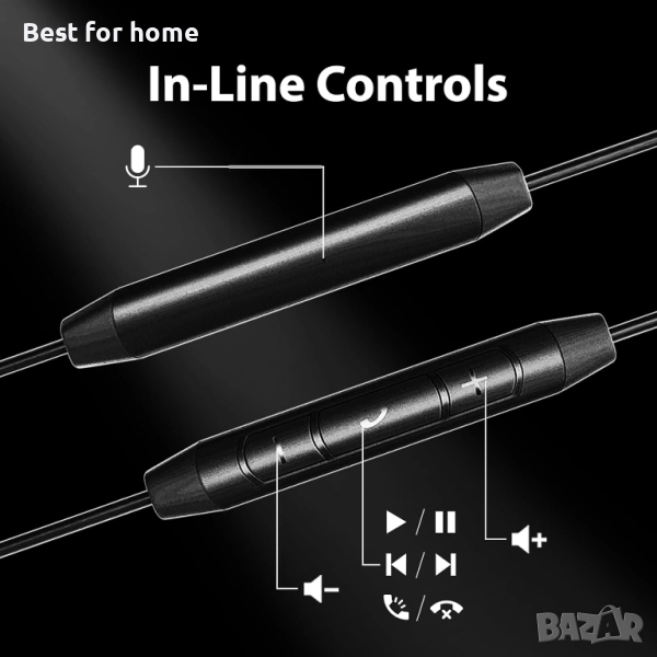 [ВГРАДЕНИ КОНТРОЛЕРИТЕ] Многофункционалните вградени контролери ви позволяват да възпроизвеждате/паузирате музиката си, да регулирате силата на звука нагоре/надолу, да пропускате/възпроизвеждате отново песни, да отговаряте/отхвърляте повиквания и да активирате гласовия си асистент - всичко това, без да докосвате телефона или устройството си.
