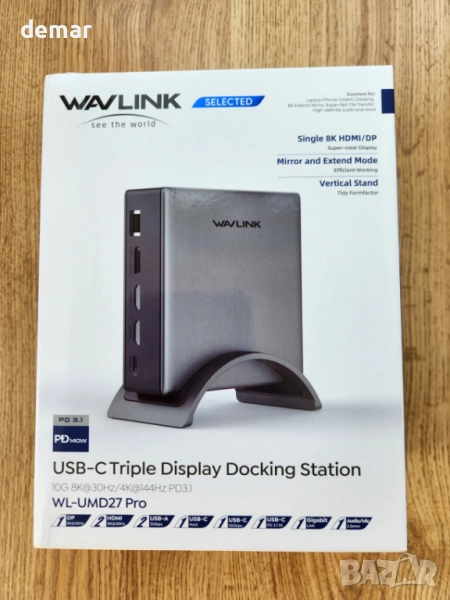 Докинг станция за лаптоп, WAVLINK PD3.1, 2*HDMI + DP, USB-C 10Gb