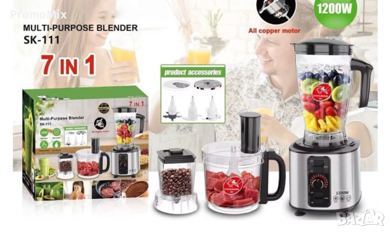 Кухненски робот 7в1 Sokany SK-111 1200W Блендер Чопър Кафе мелачка Мултифункционален уред