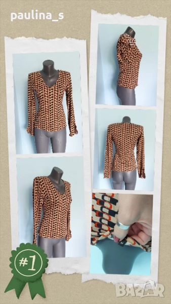 2️⃣. Колаж / M / 2XL - "Primark". Цената е крайна 19,99лв / 10 евро. Маркова блуза с дълъг ръкав от ликра с голяма еластичност, покрива няколко размера, посочени са. Моделът се вижда добре, една бройка е, без дефекти, като нова.