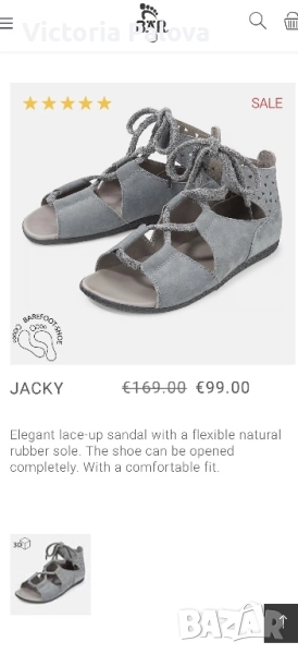 Много различни сандали, произведени специално “за бос крак”. Основната разлика от други обувки и философията на бранда е “да създадем обувка, която дава пълна свобода на пръсти”. Болезнените крака най-накрая са нещо от миналото, с тези сандали движението се доближава максимално до естествено и здравословно движение. Сандалите са олицетворение на свободни и дишащи крака. Стелка - 27,5см.