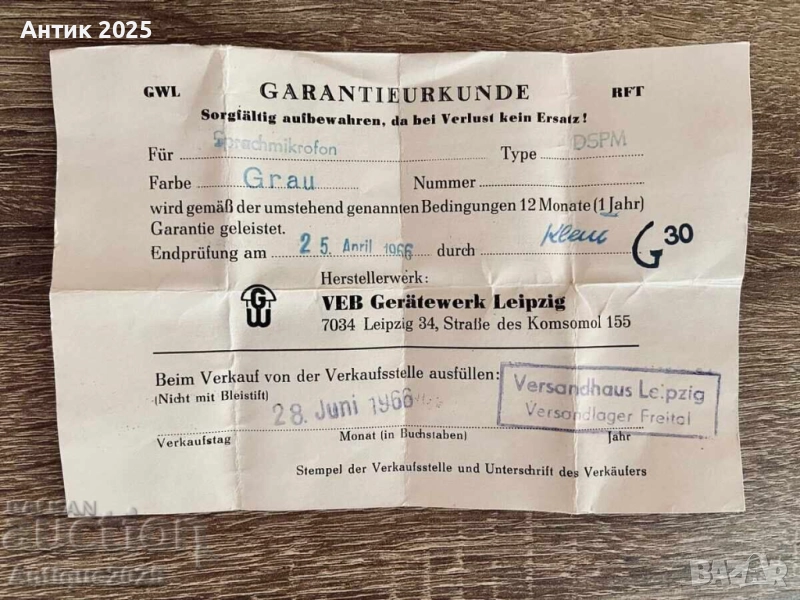 Ретро микрофон VEB DSPM (ГДР) с кутия и документ – Leipzig