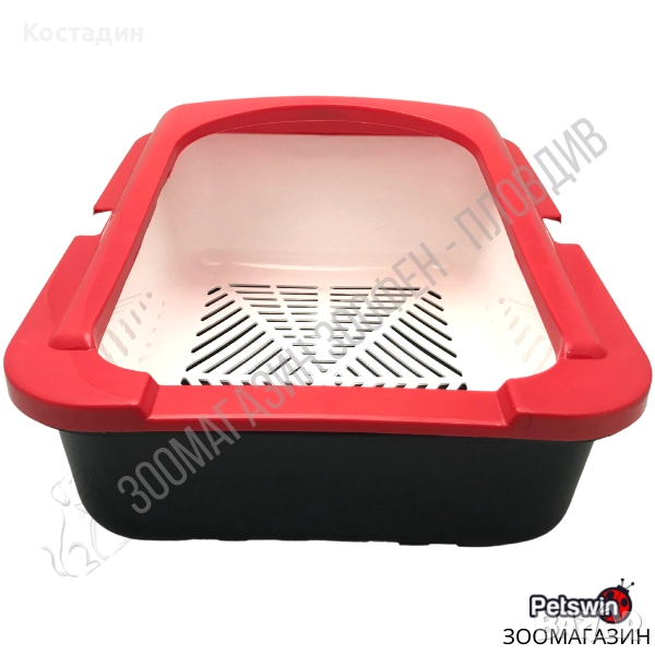 Котешка Тоалетна - с Борд - 50/38/19см - Червен/Черен - Ръчно Самопочистващ се Съд