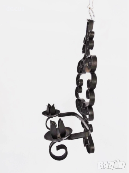 Този елегантен ръчно кован свещник от средата на 20-ти век, предназначен за две свещи, е зашеметяващо произведение от България. Идеален е за колекционери на винтидж декор за дома, изделия от ковано желязо или български артефакти.