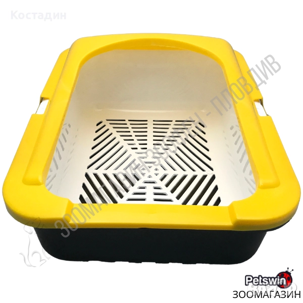 Котешка Тоалетна - с Борд - 50/38/19см - Жълто-Черна - Ръчно Самопочистващ се Съд