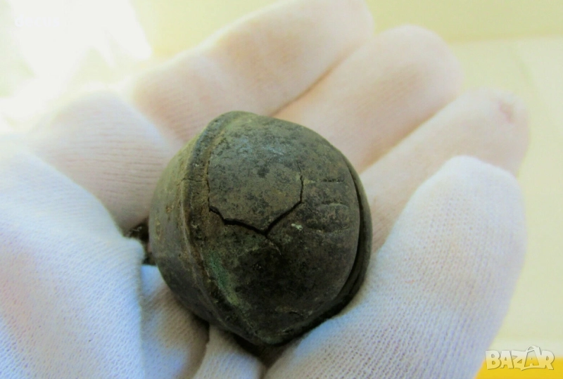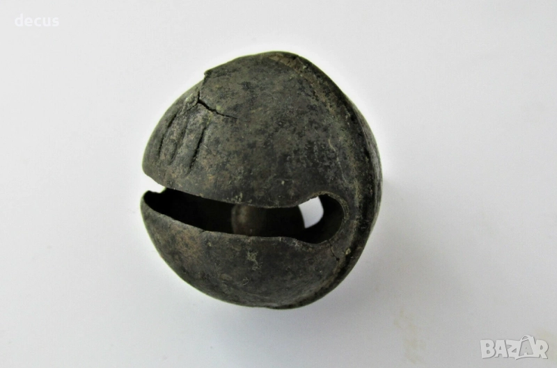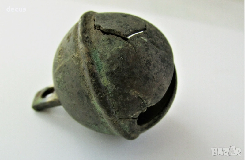Тази рядка бронзова камбана - звънче с размери 48.2 x 38 mm е забележителен артефакт. Напълно функционална с бронзова топка вътре, тя издава силен и ясен звук. Перфектната ѝ зелена патина и отличното ѝ състояние я правят задължителна за колекционерите на древни реликви. Има малка пукнатина, която съм снимал, разгледайте добре снимките!