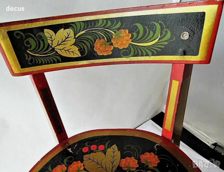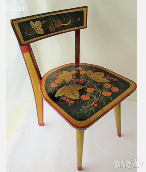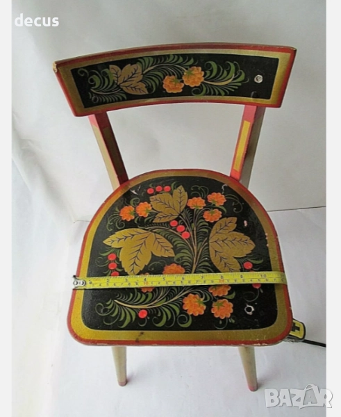 Добавете нотка съветска носталгия към колекцията си с този очарователен винтидж дървен детски стол от СССР, ръчно рисуван и изработен през 50-те години на миналия век. Неговият ретро дизайн и исторически чар го правят уникална находка за колекционери на предмети от съветската епоха, ентусиасти на винтидж мебели или родители, търсещи отличителен декор за детска стая.