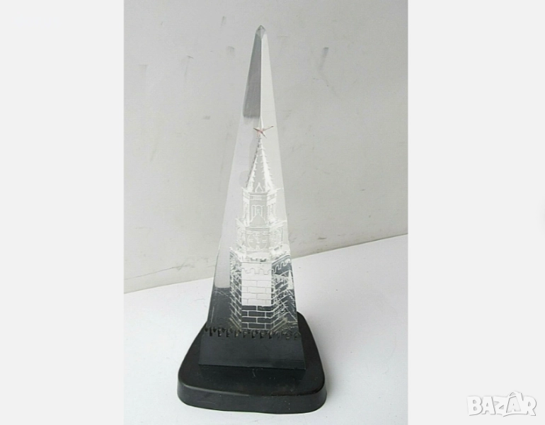 Този винтидж сувенир от плексиглас на СССР, изобразяващ Кремъл, е рядка колекционерска вещ за любителите на съветската носталгия. С размери 7" (18,5 см), той е в добро състояние с леки износвания, което го прави уникално допълнение към колекции от сувенири от комунистическата епоха или руски артефакти.
