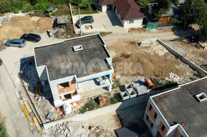 Втори етаж - три спални, две бани, два дрешника, южна панорамна тераса. Едната спалня разполага с баня, тоалетна и дрешник. Къщата е изградена с висококачествени материали. Парцела е с правилна форма и площ от 524 кв.м