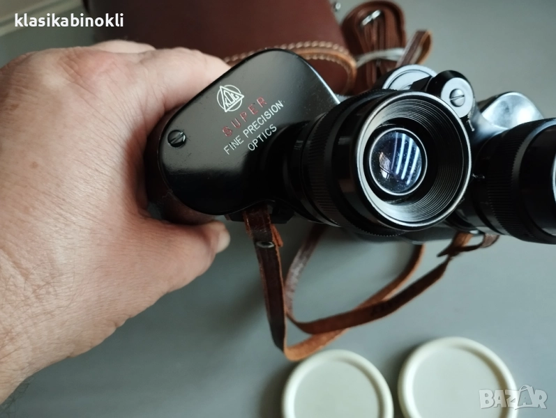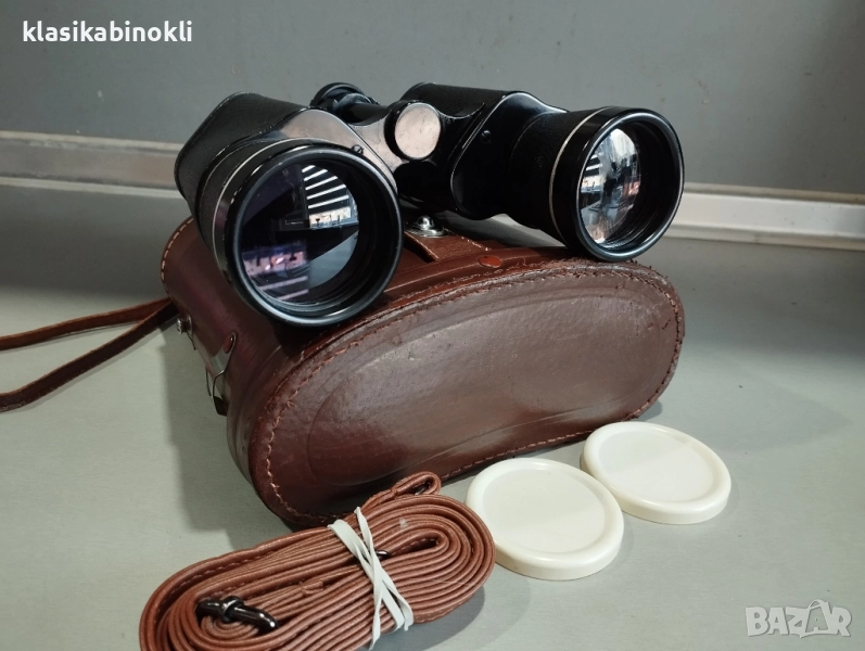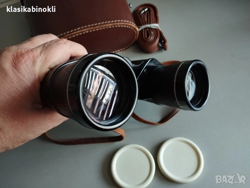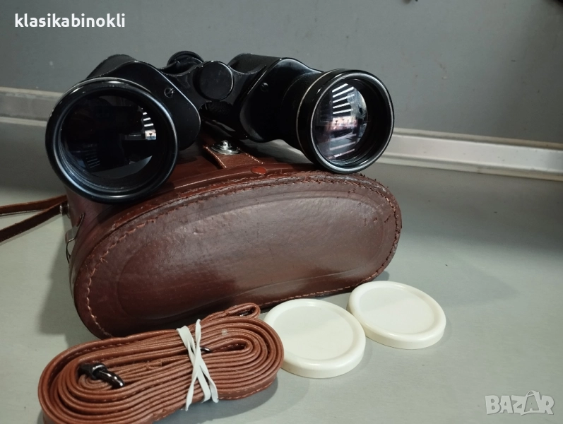Бинокълът е в комплект с -ОРИГИНАЛНА КОЖЕНА ЧАНТА , ОРИГИНАЛЕН РЕМЪК , ОРИГИНАЛНИ КАПАЧКИ
