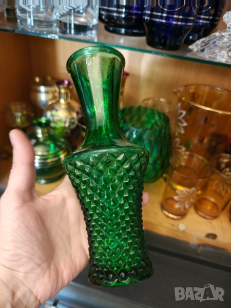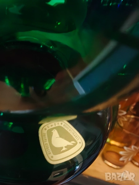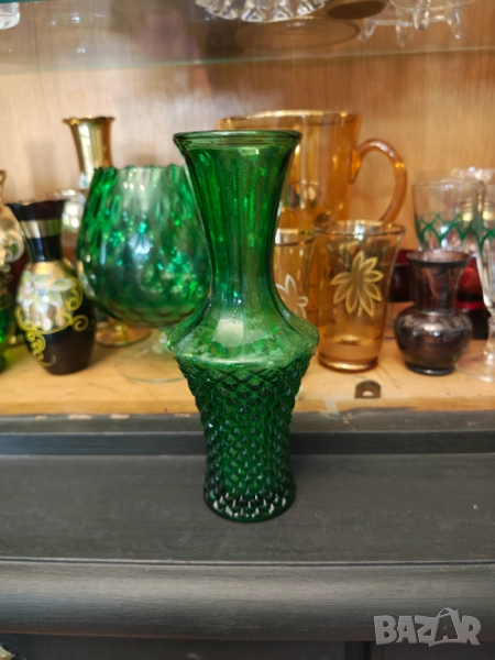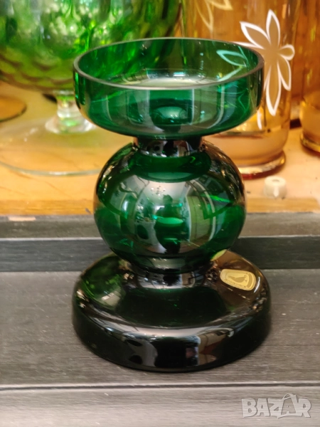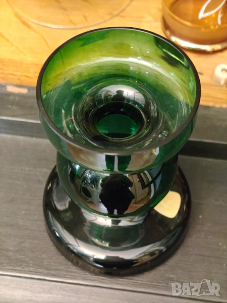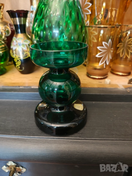 Колекционерски Арт Деко свещник и ваза във великолепен зелен цвят .Не ползвани колекционерски.Маркови.Кристал.Ваза 21 см Свещник 13 висок диаметър 9 см. Цена за лот не се продават отделно