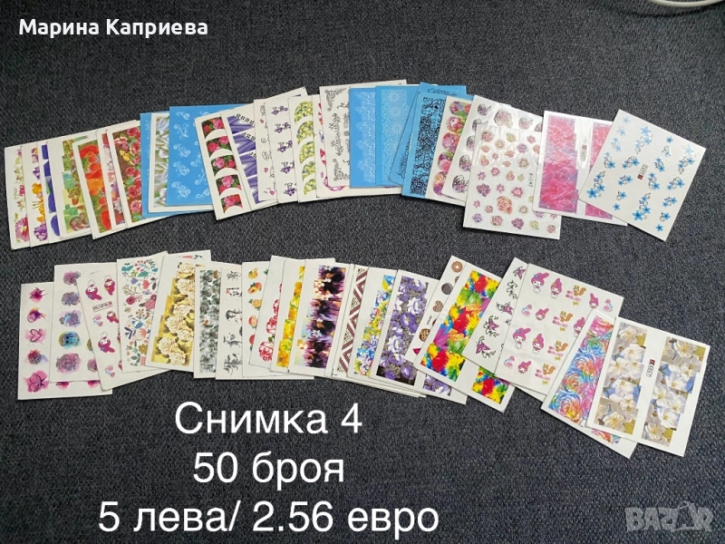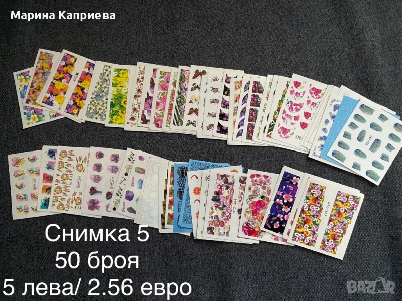 Разпродажба! 50 броя листчета с водни стикери за 5 лева, снимка 1 - Продукти за маникюр - 51459908 Разпродажба! 50 броя листчета с водни стикери за 5 лева, снимка 2 - Продукти за маникюр - 51459908 Разпродажба! 50 броя листчета с водни стикери за 5 лева, снимка 3 - Продукти за маникюр - 51459908 Разпродажба! 50 броя листчета с водни стикери за 5 лева, снимка 4 - Продукти за маникюр - 51459908 Разпродажба! 50 броя листчета с водни стикери за 5 лева, снимка 5 - Продукти за маникюр - 51459908 Разпродажба! 50 броя листчета с водни стикери за 5 лева, снимка 6 - Продукти за маникюр - 51459908 Разпродажба! 50 броя листчета с водни стикери за 5 лева, снимка 7 - Продукти за маникюр - 51459908 Разпродажба! 50 броя листчета с водни стикери за 5 лева, снимка 8 - Продукти за маникюр - 51459908 Разпродажба! 50 броя листчета с водни стикери за 5 лева, снимка 9 - Продукти за маникюр - 51459908 Разпродажба! 50 броя листчета с водни стикери за 5 лева, снимка 10 - Продукти за маникюр - 51459908 Разпродажба! 50 броя листчета с водни стикери за 5 лева, снимка 11 - Продукти за маникюр - 51459908 Разпродажба! 50 броя листчета с водни стикери за 5 лева, снимка 12 - Продукти за маникюр - 51459908 Разпродажба! 50 броя листчета с водни стикери за 5 лева, снимка 13 - Продукти за маникюр - 51459908 Разпродажба! 50 броя листчета с водни стикери за 5 лева, снимка 14 - Продукти за маникюр - 51459908 1/14