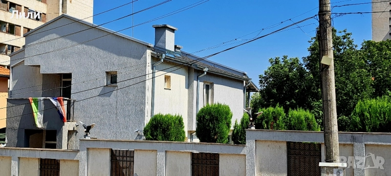 в двора има гараж/работилница 45м2 с плочки,климатик,ролетна щора с дистанционно управление,ал.дограма с щори и с врата,сот и алармена система +още 2 парко места за автомобили с изграден навес над тях.