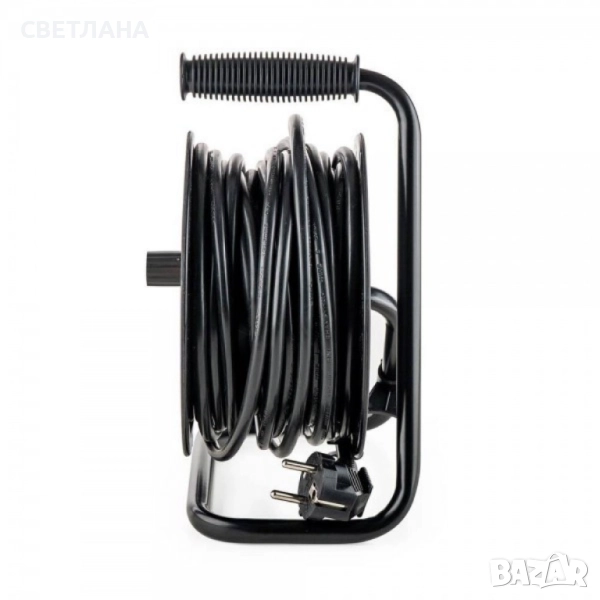 Тип удължител: С макара и детска защита; Гнезда: 4 гнезда; Кабел: H05VV-F, 3x1.5 мм², дължина 15 метра; Максимална мощност при навит кабел: 1000W, 230V, IP20; Максимална мощност при развит кабел: 3200W, 230V, IP20; Защита: Защита от претоварване, IP20, детска защита.