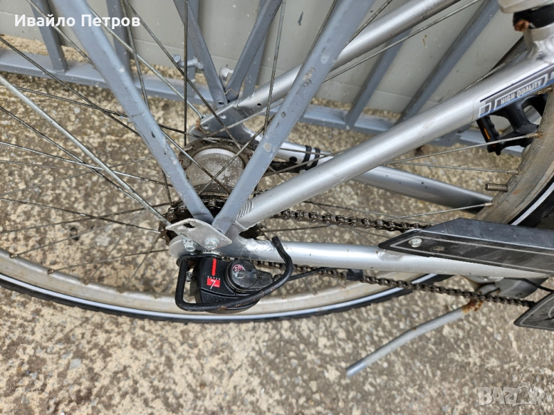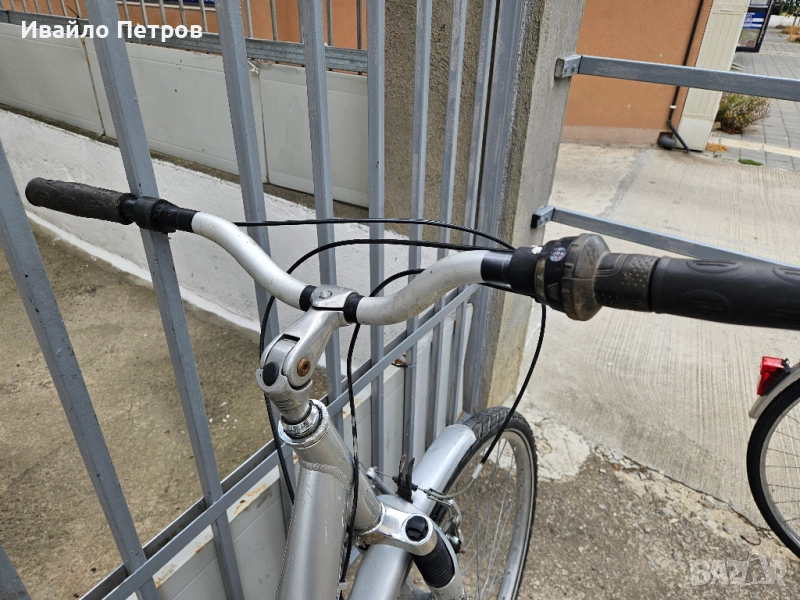 Алуминиев велосипед 28 цола,7 вътрешни скорости,контра,пълна окомплектовка SRAM,два амортисьора,раздвижно колче на кормилото,двустенни капли,подходящ за хора с височина 165-185см.