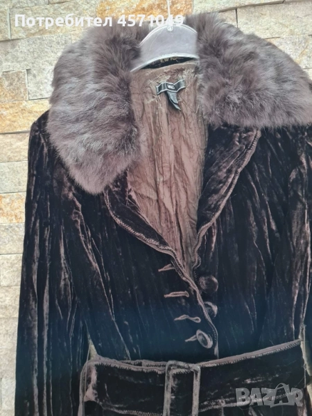 Дълго яке Mango с яка от чинчила, мека кадифена материя, размер М, 50лв., Еконт и Спиди.