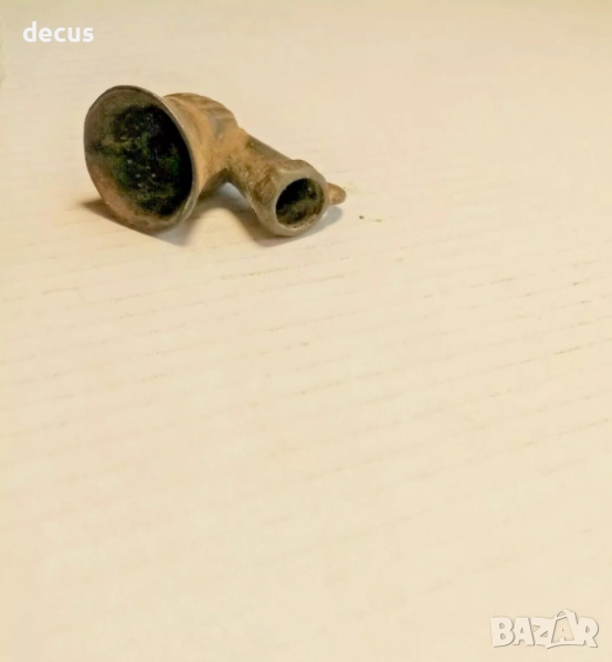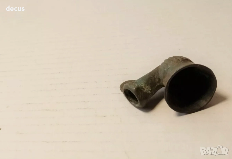 Автентична бронзова лула за пушене от времето на Османската империя, датираща от XVIII–XIX век. Този исторически артефакт е прекрасен пример за фината ръчна изработка и стилистичните особености на епохата, в която лулата е била не само средство за пушене, но и културен символ.