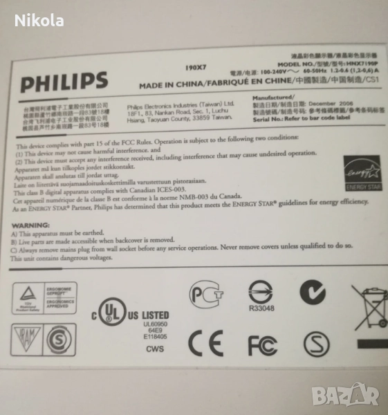 Продавам/Бартер Смарт Монитор PHILIPS 19X7FB/00 с Тъч Бутони, DVI-D, HDCP, VGA и USB ! → Обява 51462701