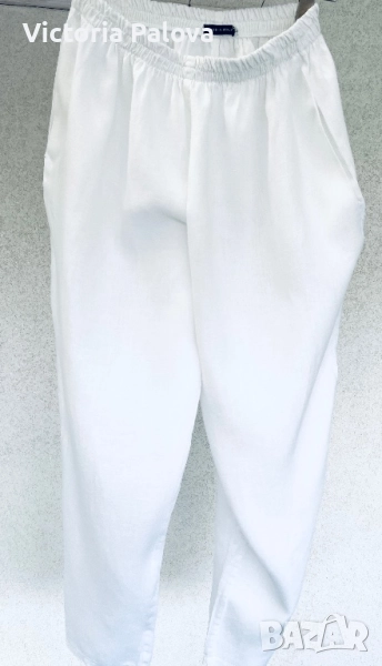 Свободен панталон , талия с ластик , разтяга се от 34см до 55см едностранно, дължина - 103см, отвътре - 77см, широчината на крачола горе - 41см, долу - 22см.