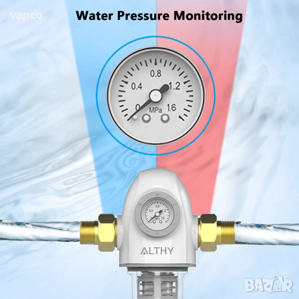 ●【Защита на цялата къща】Предфилтърът за цялата къща ALTHY AL-PRE-AUTO2, с филтър от неръждаема стомана с размер на порите 40 микрона, е проектиран да предотвратява навлизането на частици като пясък, ръжда, варовик и пясък в дома ви.