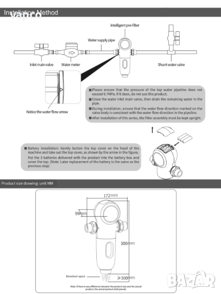 - Тип пречистване на водата: напълно автоматичен предфилтър
