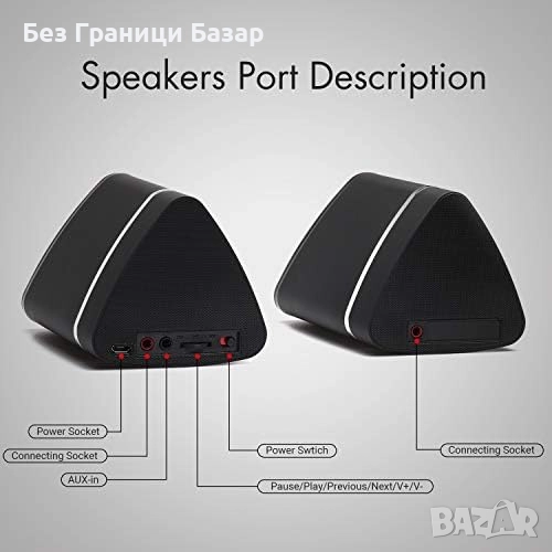 Нови Два Безжични Говорителя Стерео Комплект Bluetooth за Таблет/PC