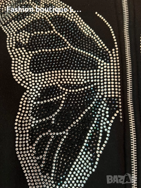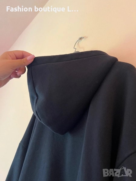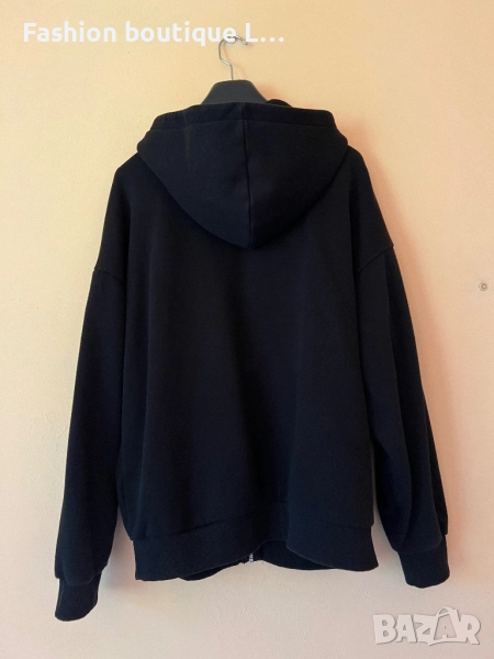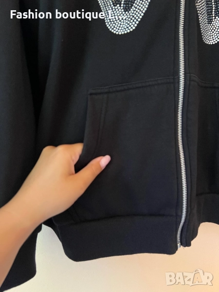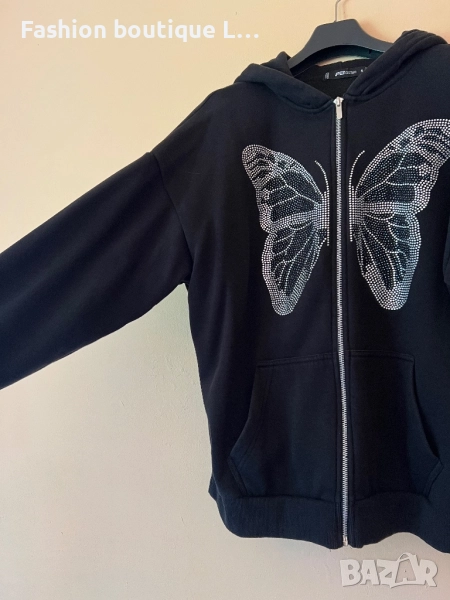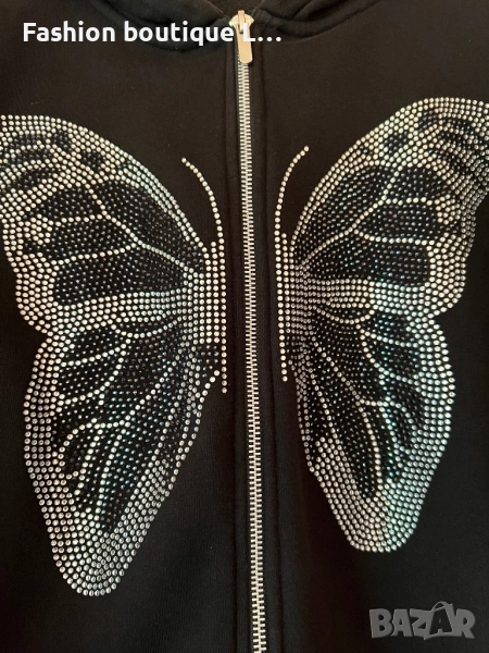 Черен анурак с пеперуда от сребърни камъчета и качулка С размер 100% памук 🖤 → Обява 51463484