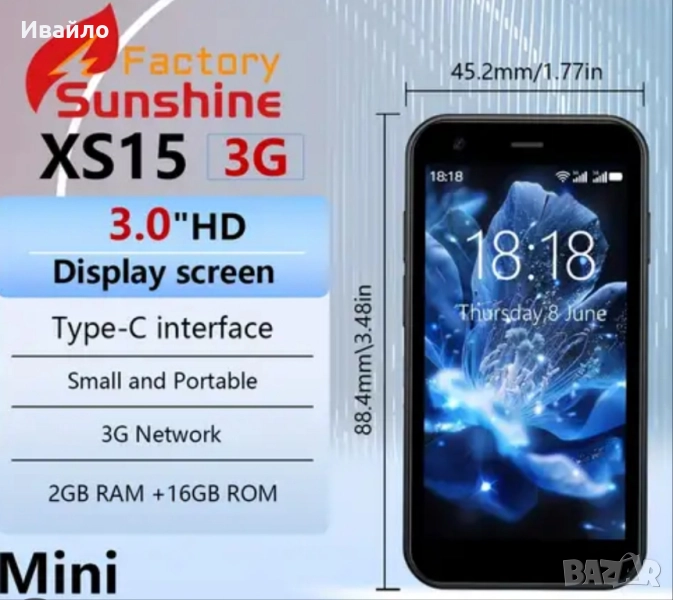 Ново!!! Мини смартфон размер на дисплея - 3 инча
