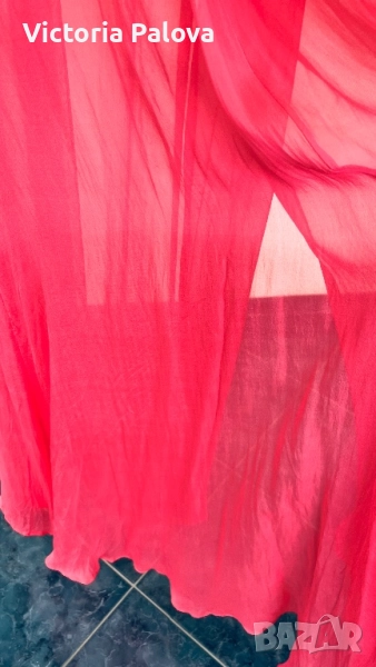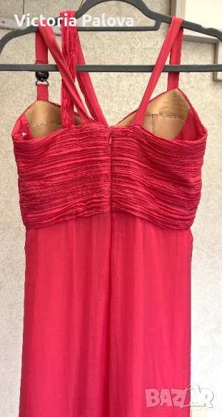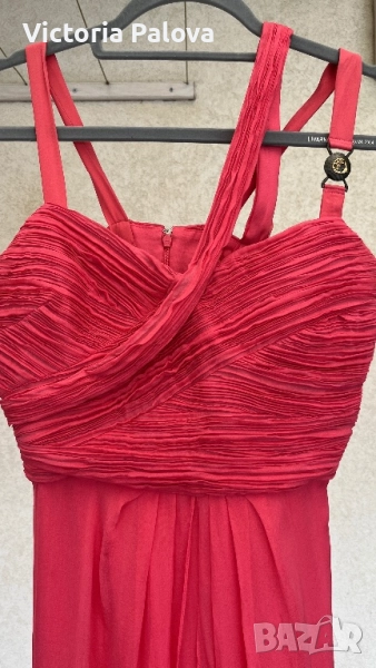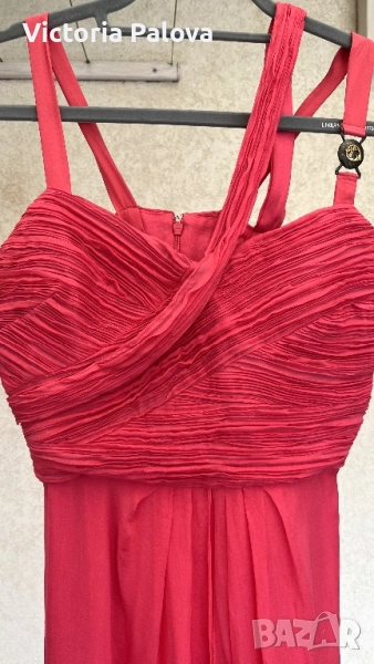 vintage от GIANNI VERSACE цвят сьомга, дълга 145см от презрамка, ГО - 42см ( от двете страни под мишници е стеснявано, може да се разшие без проблем). Под бюста, където свършва гофрираната част, шевът е 38см едностранно. Gianni Versace е първият дизайнер, който утвърждава влиянието на супермоделите и знаменитостите, преобразява VERSACE в символ на блясък и чувственост, поставя над всичко сексапила и изтънчеността.