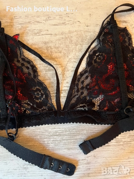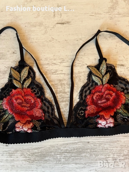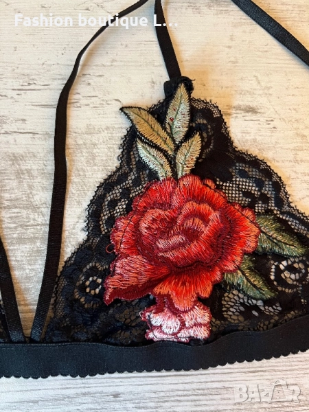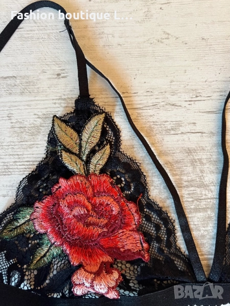 Дантелено черно бюстие с прибира бродерия с цветя и ленти през гърдите 🖤❤️🖤 → Обява 51465038
