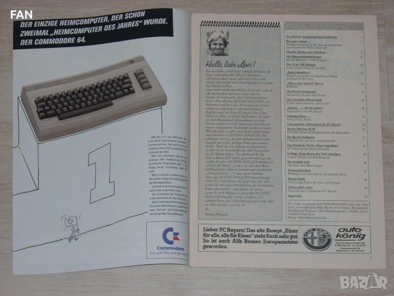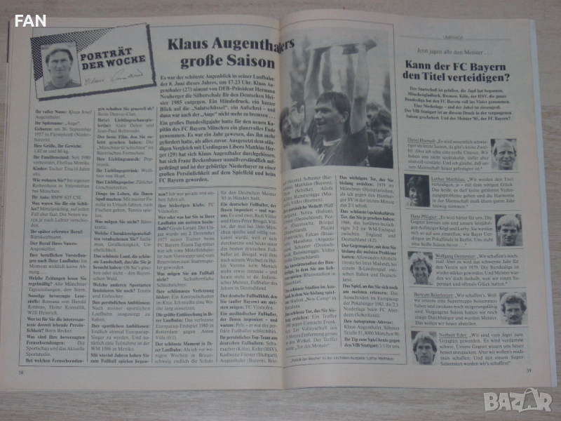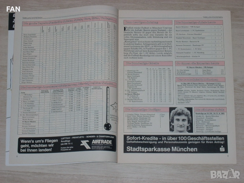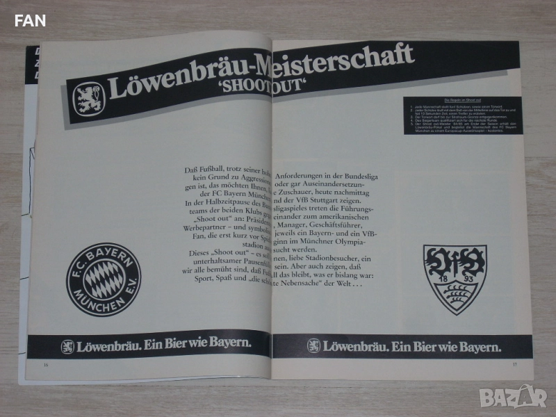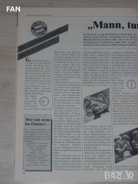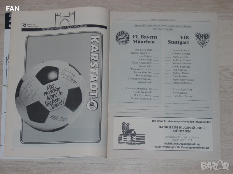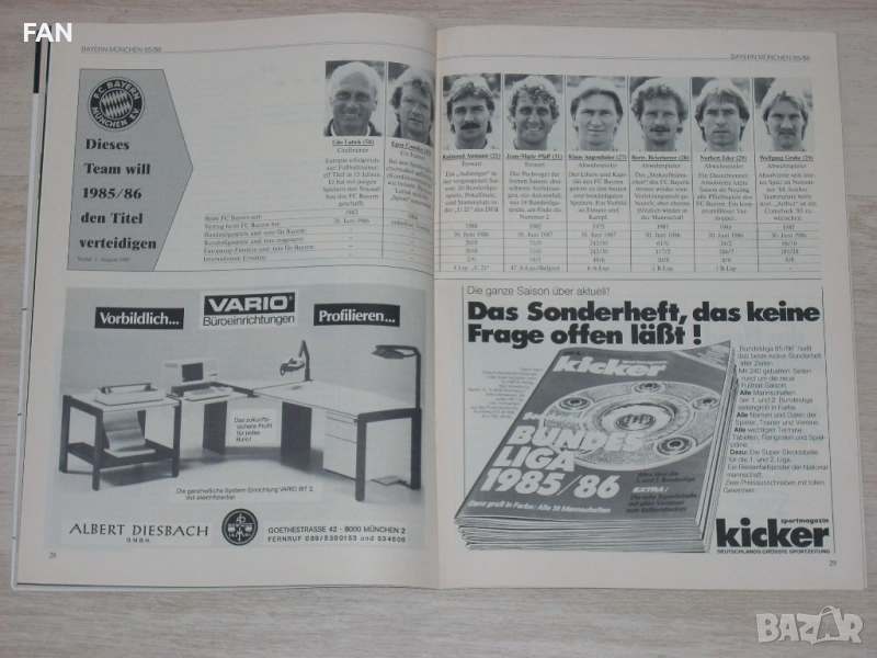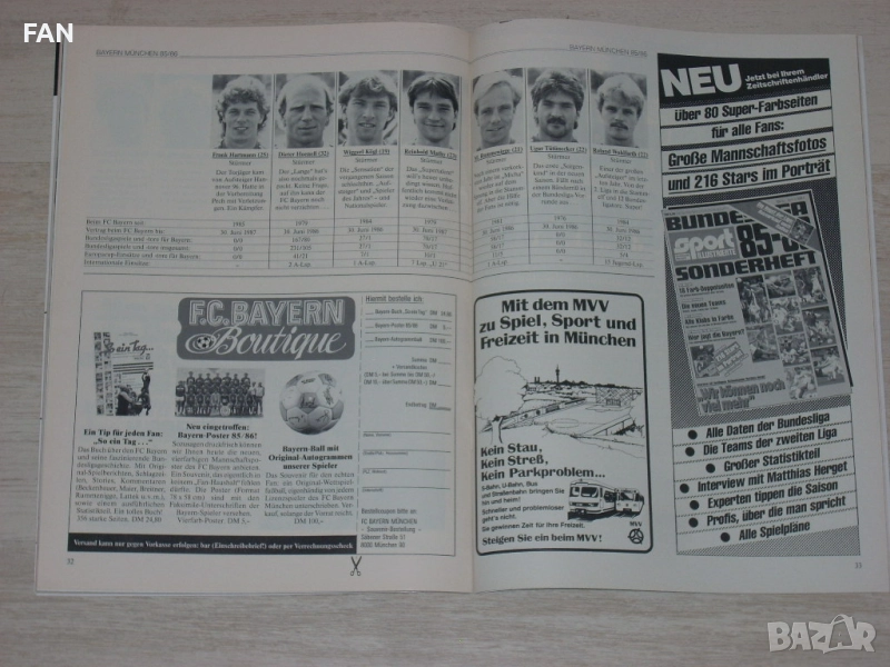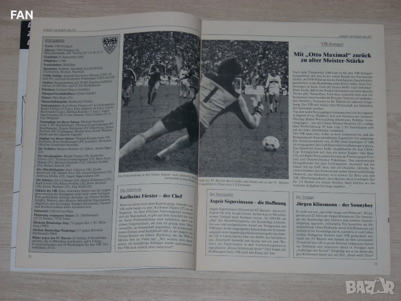 Предлагам оригинално немско списание на Байерн (Мюнхен) от сезон 1985/86, което представя и мача им от Бундеслигата срещу Щутгарт, игран на 17 август 1985 г.