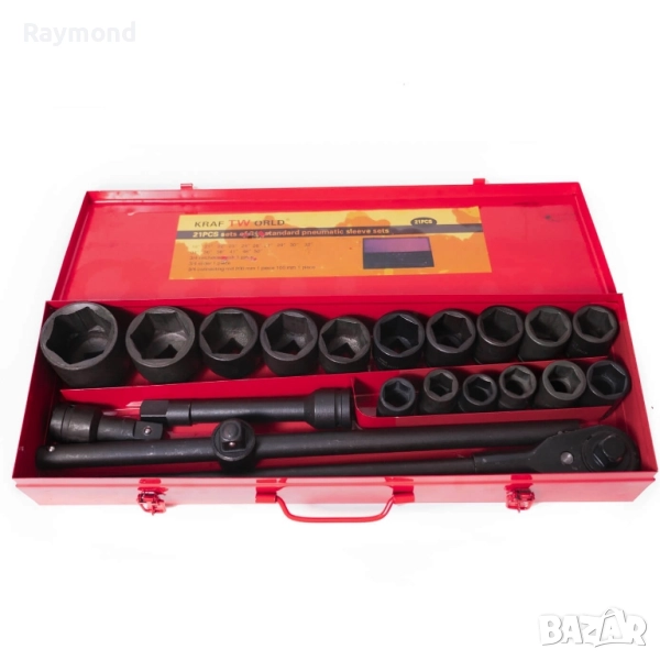 Професионално гедоре 21 части KraftWorld – ударни вложки до 50 мм + метална кутия