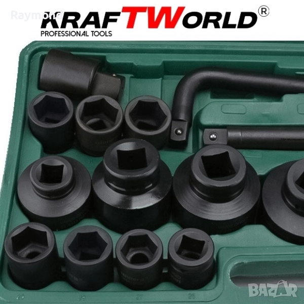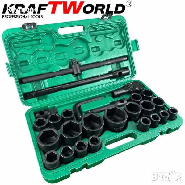 Камионджийско гедоре 26 части KraftWorld – 3/4″ & 1″, ударни вложки 21–65 мм