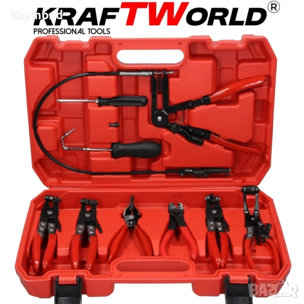 Комплект клещи за скоби на водни съединения 9 части KraftWorld – професионален