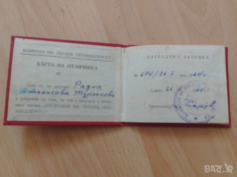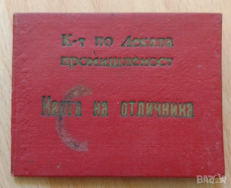 Карта на отличника Комитет по леката промишленост соц антика 1964 година