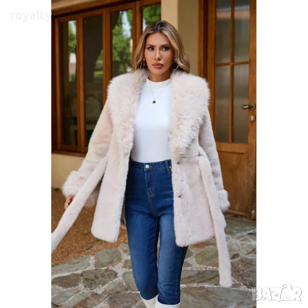 Вталено еко-палто с колан и яка налично в ЧЕРНО БЯЛО БЕЖОВО → Обява 51465913