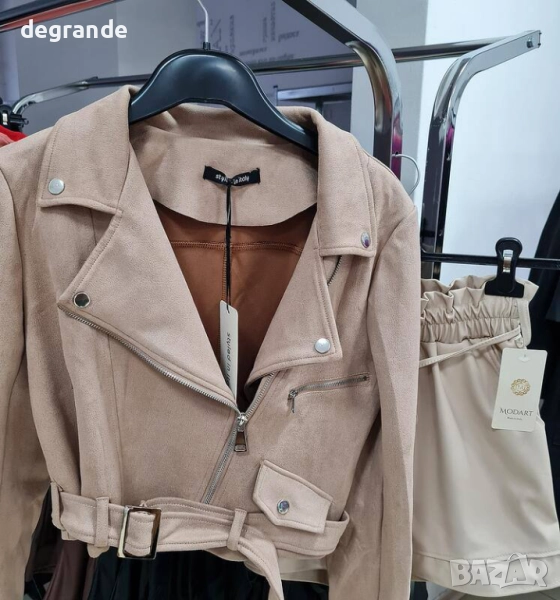 Дамско късо яке налично в Бежево и зелено, снимка 1 - Якета - 51466459 Дамско късо яке налично в Бежево и зелено, снимка 2 - Якета - 51466459 1/2