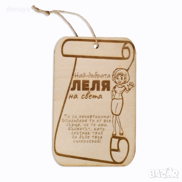 Изразете любовта и признателността си с тази стилна подаръчна плочка с надпис „Най-добрата ЛЕЛЯ на света“. Изработена от висококачествен MDF материал и снабдена с практична връвка за закачане, тя е едновременно красив акцент и емоционален подарък.