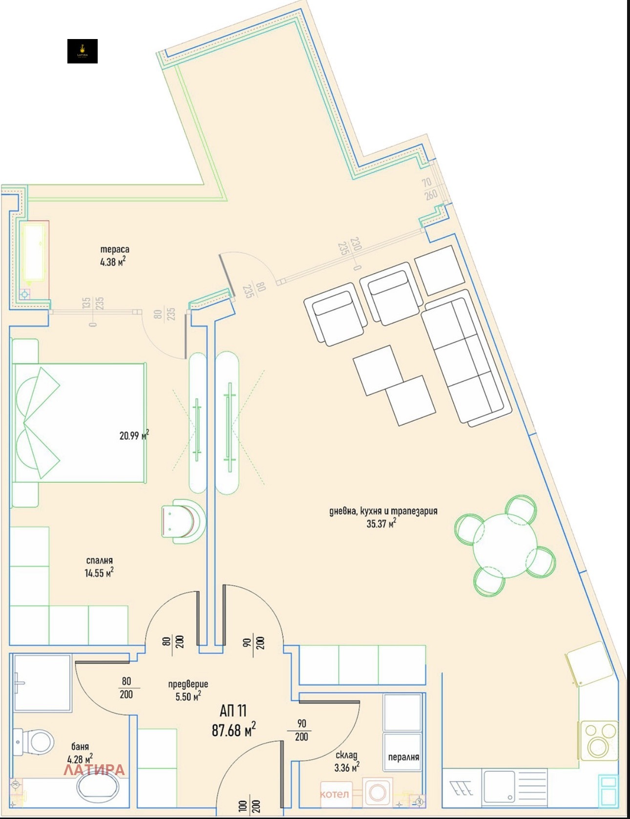 Агенция за недвижими имоти LATIRA ESTATE има удоволствието да Ви представи просторен 2-стаен апартамент с 35 кв.м дневна, в предпочитаният кв. Малинова долина!