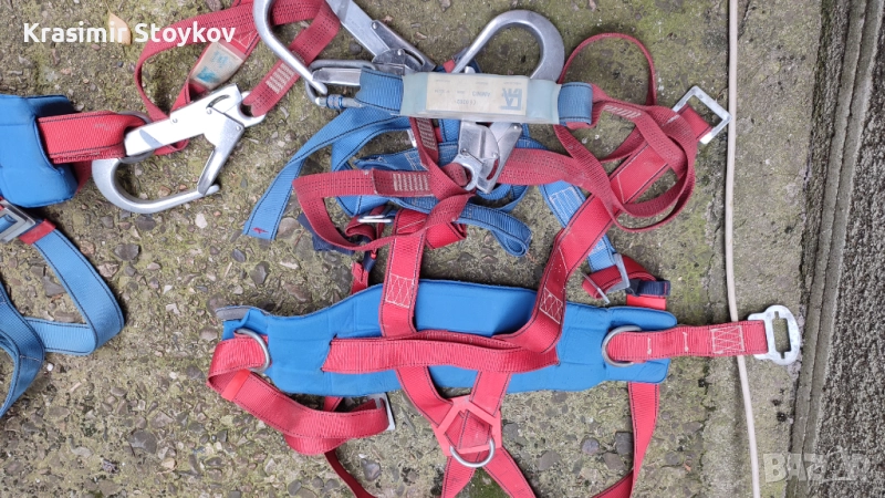 Продавам пълен комплект сбруи, включващи шок абсорбер, куки и карабини. В много добро състояние.
