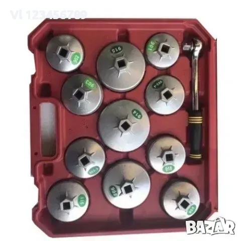 Специализиран комплект алуминиеви чашки за маслен филтър подходящ за повечето Европейски, Американски и Азиатски автомобили.