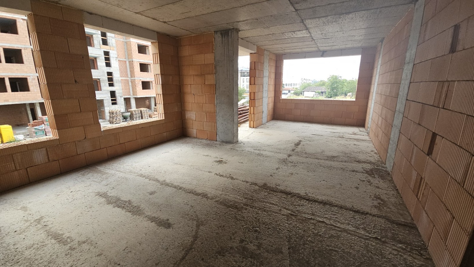 Апартаментът е с реална площ над 80 кв.м.. Разполага с голяма дневна, с реална възможност за разделяне на 2 самостоятелни стаи (хол с кухня и спалня) с нормални размери и осветеност, голяма спалня, голямо входно антре с място за гардеробна и перално помещение, баня с тоалетна и тераса. Към апартамента принадлежи изба с отделна квадратура.