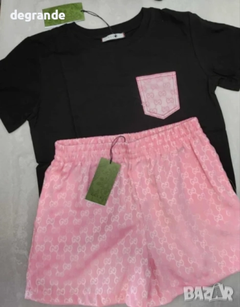 Уникален жакардов сет Gucci от две части.Къси панталонки+тениска(черна) с джобче.