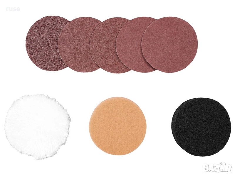- комплект от 5 шкурки с три размера със зърнистост (1 х 60 / 2 х 120 / 2 x 240)