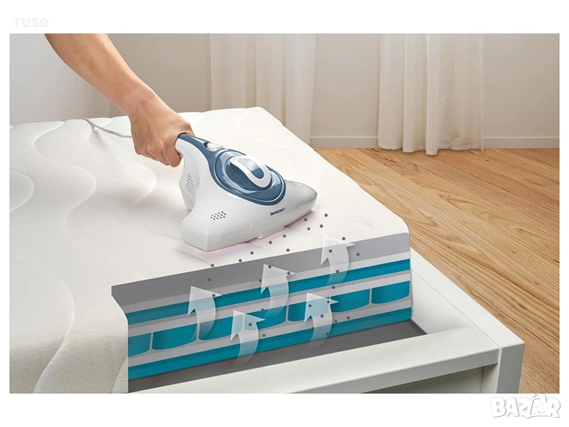 - Почиства легла, матраци и меки мебели от прах и замърсяване