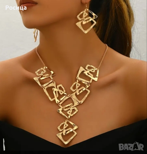 Дамски комплект колие с обеци златисти → Обява 51468690